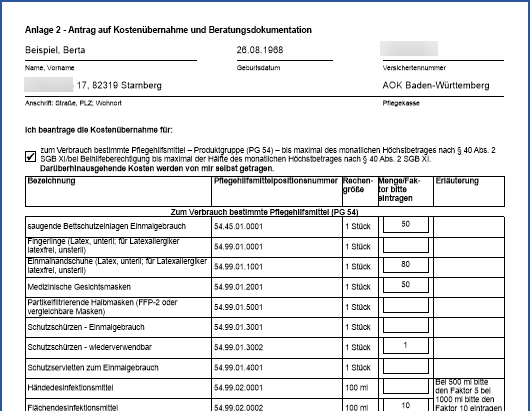 Zum Verbrauch bestimmter Pflegehilfsmittel